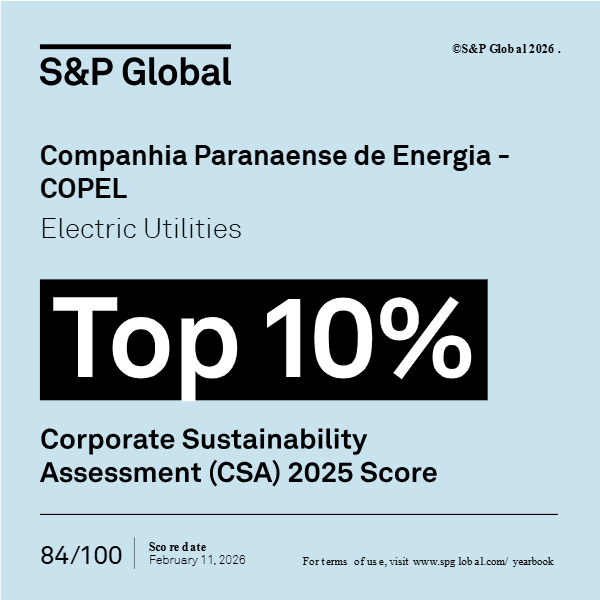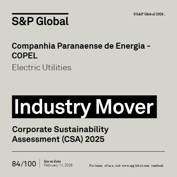 O Yearbook é considerado uma das principais referências globais para investidores e especialistas do setor, por evidenciar companhias que se destacam em sustentabilidade. No setor de energia, a Copel está posicionada entre as 10% melhores empresas do mundo, além de ter recebido a distinção Industry Mover, concedida às organizações que apresentaram o maior avanço relativo em seu setor no S&P Global CSA Score. O score da Copel atingiu 84 pontos em 100.